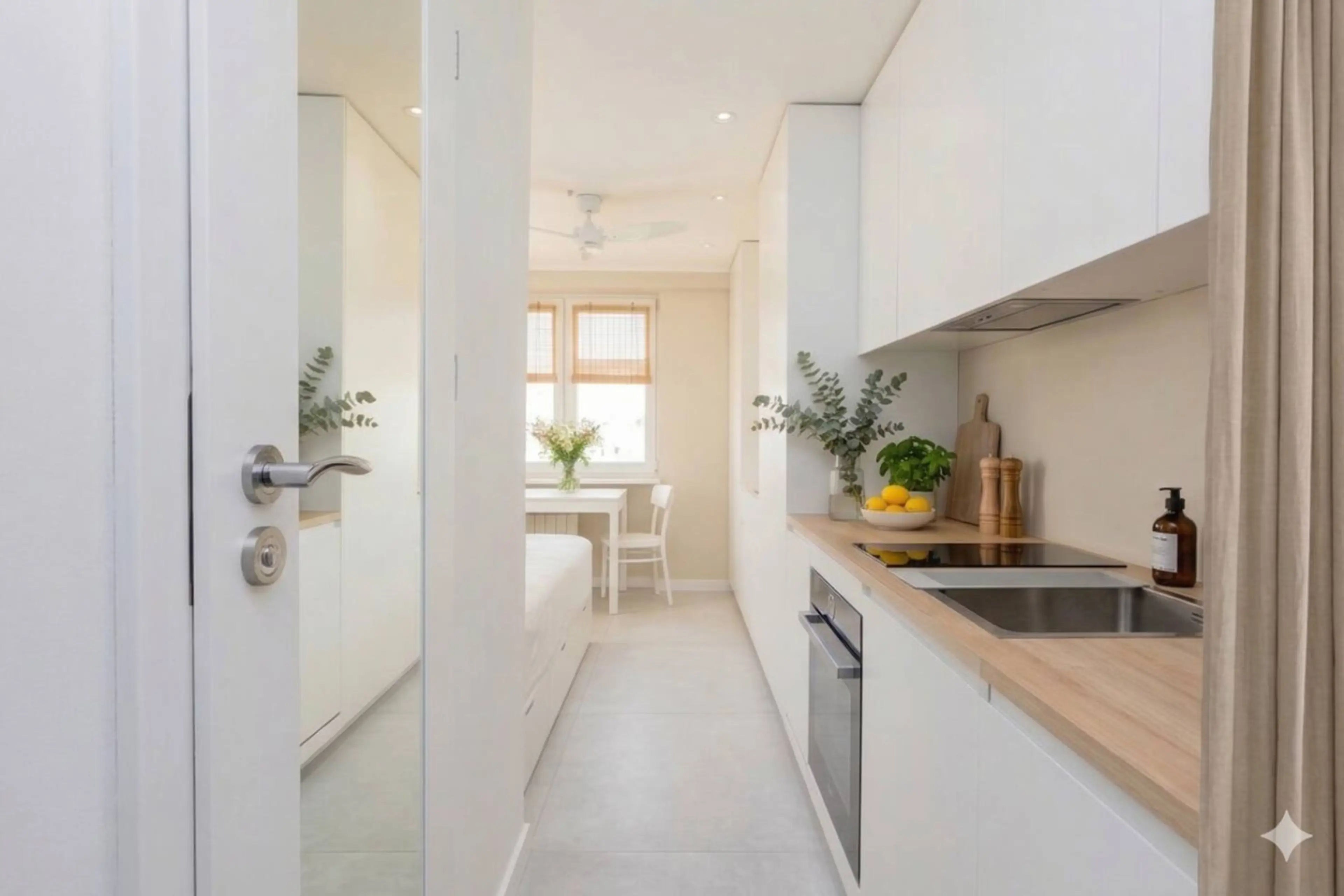 Jasna, nowoczesna kawalerka wykończona w wysokim standardzie. Przemyślane, minimalistyczne wnętrze łączy biel z ciepłym drewnem. Funkcjonalny aneks kuchenny płynnie przechodzi w strefę jadalnianą i sypialnianą z dużym oknem. Stylowa łazienka oferuje elegancką szarą glazurę i przeszklony prysznic. Mi...